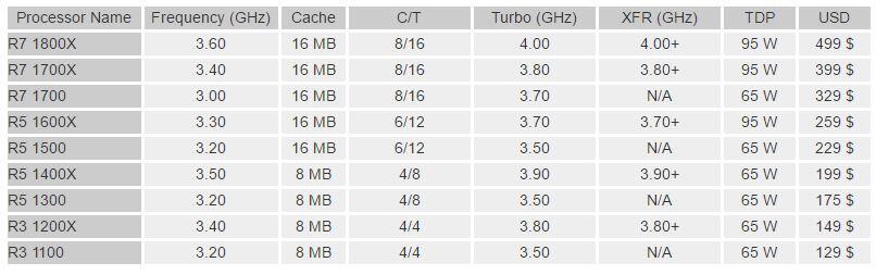 上图中的AMD Ryzen处理器价格只有R7系列是确定的,R5以及R3系列仅为参考价格。