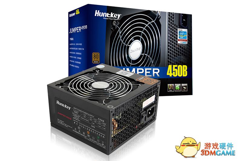 通过整机功耗计算我们选择450W电源足够带动整台PC并留有余量了,而这款航嘉Jumper 450W采用双管正激技术,+12v单路35A大电流输出,满足我们供电需求;并且这款电源通过80plus铜牌认证,转换效率有不错的保证,比较适合游戏玩家日常使用。