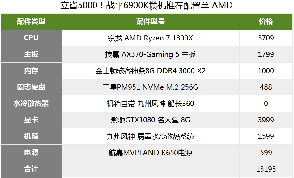 让我们再来看看使用郭少推荐的1800X进行攒机的价格表: