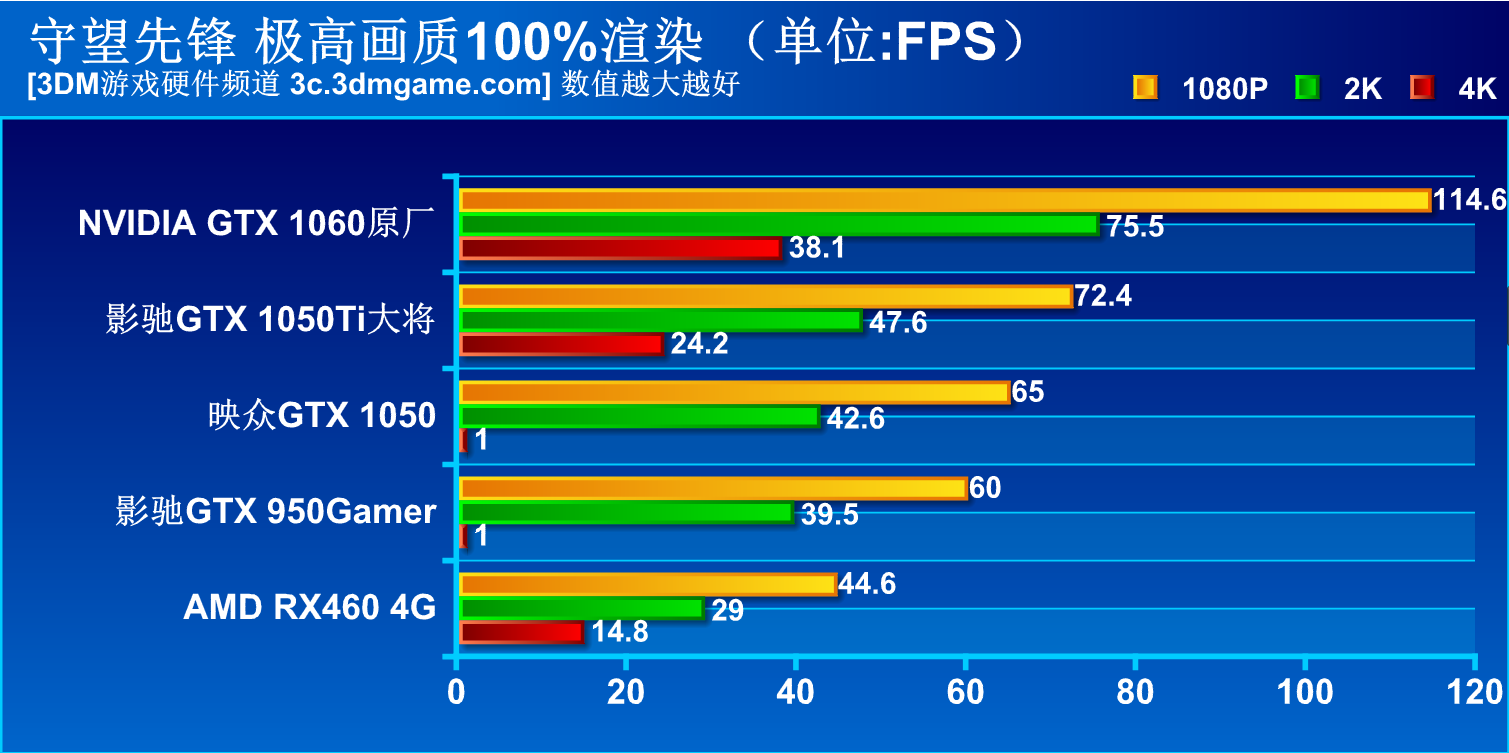 请注意,这张数据表是在守望先锋开最低特效和50%渲染才能勉强流畅运行,如果开100%渲染,帧率直接掉到30FPS以下!