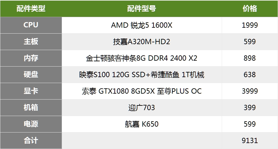 如果你是一名普通的玩家可以将GTX1080缩减成GTX1060,这样预算瞬间就下来了一些,省下的钱可以买个采集卡或者摄像头之类的东西!