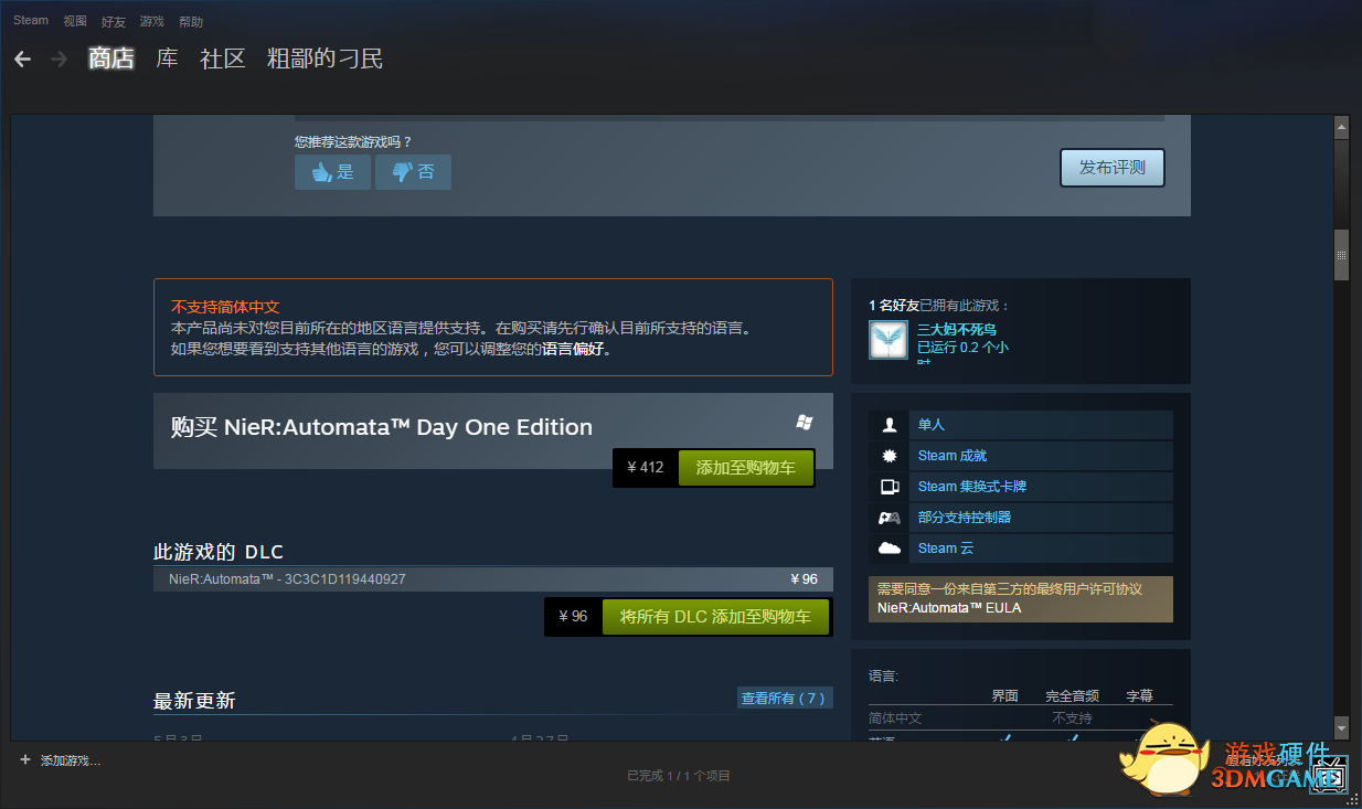 要说最近游戏圈的大事件,《尼尔:机械纪元》的涨价风波绝对算得上是一个,早在3月17日《尼尔:机械纪元》就登录了Steam,不过可能是考虑到为PS4版游戏让道,游戏发售初期就没有面向包括日本的亚洲地区发售,而后的事情如果对这款游戏有所关注的玩家可能已经知道了,游戏登录国区Steam时首发价格为199,但仅仅过了两个小时,国内玩家还没来得及喊良心时游戏就又涨价到了412。