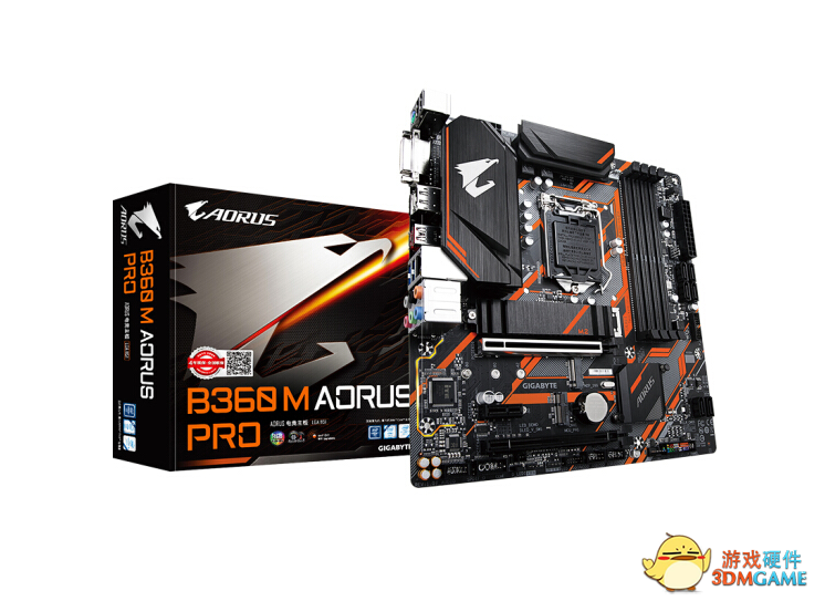 选择了i5-9400F之后,意味着我们需要最新的300系主板,但由于我们不需要超频,所以直接选择品质好一些的B360主板即可。本次我们选择了来自电竞老牌厂商的技嘉B360 M AORUS PRO主板,这也是技嘉产品序列中所谓的“小雕”。作为一块小型主板,他自身的扩展性还是不错的。板载了两个支持NVMe协议的M.2接口,也预留了可扩展Intel CNVi网卡的M.2接口。主板采用5+1相供电,对于这种小板来说已经是非常不错的规格。板上的主PCIe插槽也加装了金属装甲,避免了显卡重量压弯主板的尴尬。