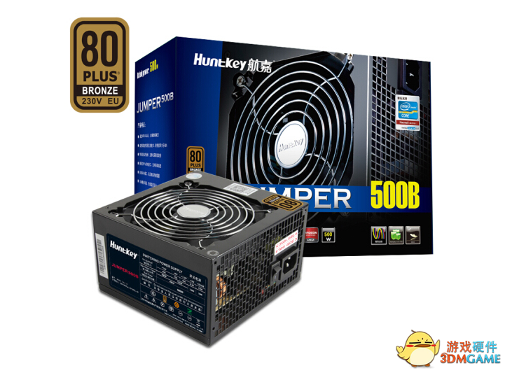 电源方面我们选择了来自航嘉的500W功率,铜牌电源。对于我们这套i5-9400F+GTX 1660 Ti的组合来说,500W的功率足够使用。虽然没有引入全模组线材,但是胜在性价比高。