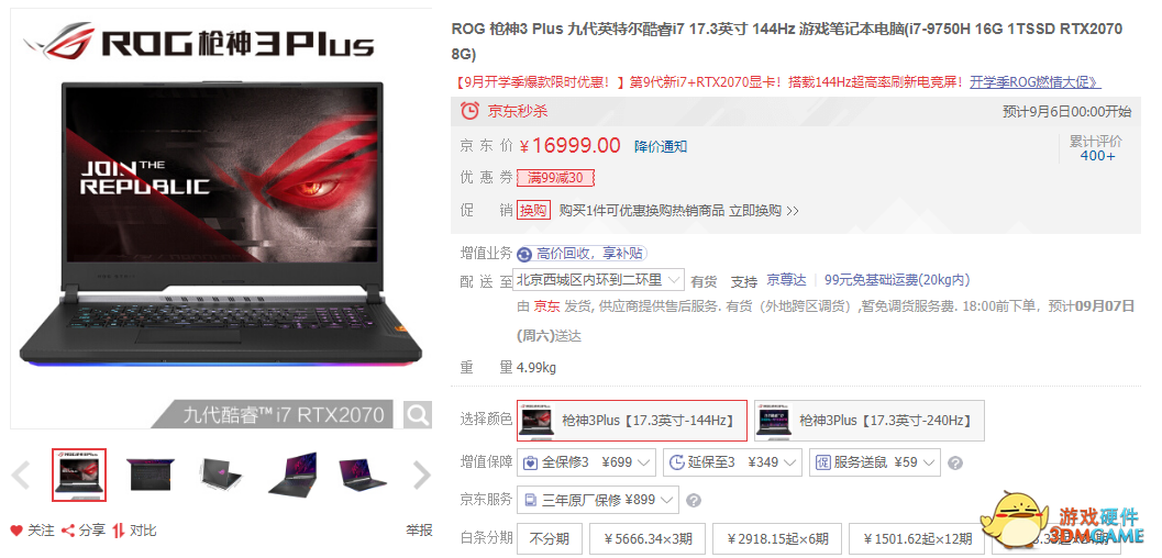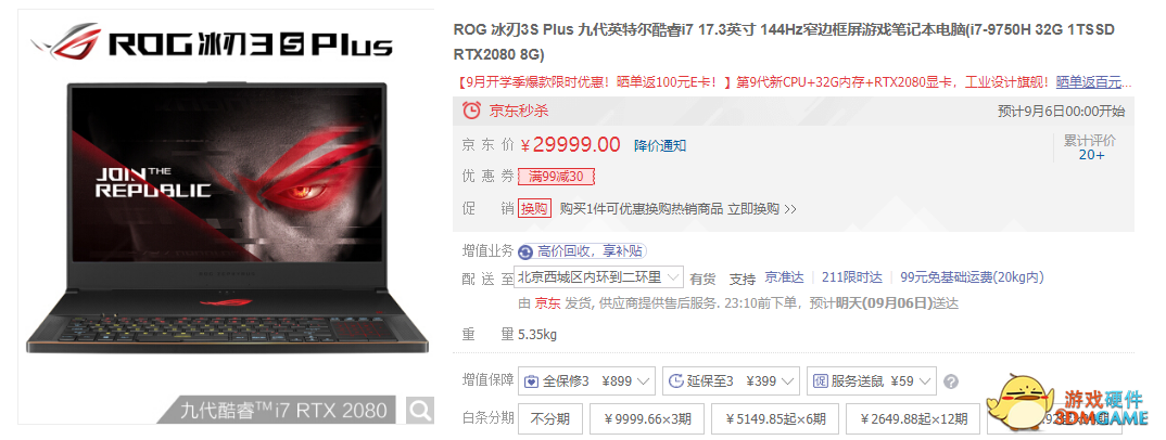 而对于ROG魔霸3Plus而言,虽然也采用了NVIDIA GeForce RTX™ 2060显卡,但与ROG魔霸3搭载GeForce RTX™ 2060显卡的机器有着本质的区别。其区别在于采用了17.3英寸的大屏幕(前者为15.6英寸),玩家可以通过更大的屏幕从而获得更加沉浸的游戏体验。在活动期间,ROG魔霸3Plus的售价为12999元。