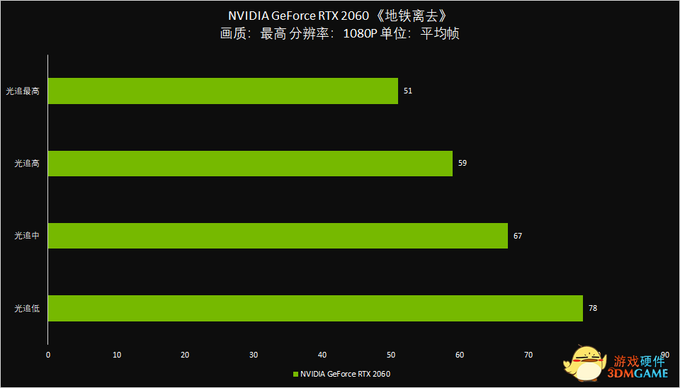 从实际测试数据来看,当NVIDIA GeForce RTX 2060在开启光追以中高配置畅玩地铁:离去的情况下可以达到60帧的稳定帧率,在光追效果开到最高的情况下帧数相比没开光追还是有一定的差距。