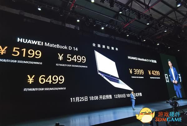 华为下午的发布会进入了尾声,今天发布的两款Matebook D系列笔记本价格也公布了,其中D14笔记本的Intel处理器版售价5199元起,AMD锐龙版3999元起,而D15的锐龙版也是3999元起,十代酷睿版是5299元起,今天开始预约,12月3日正式开卖。