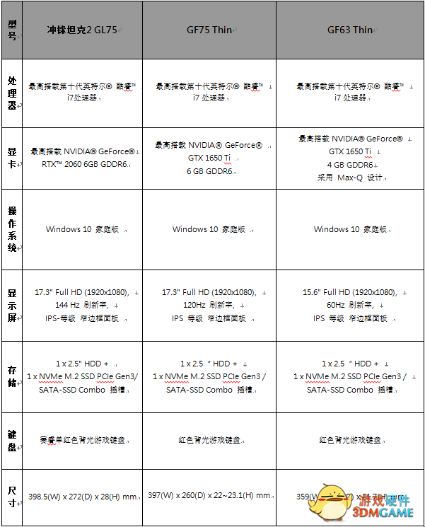 此外,冲锋坦克2 GL/冲锋坦克2 Pro GP和GF Thin系列产品也相继发布了最新一代,这些新产品都配备有第十代英特尔® H –系列处理器和NVIDIA GeForce显卡,供玩家自由随心选择。