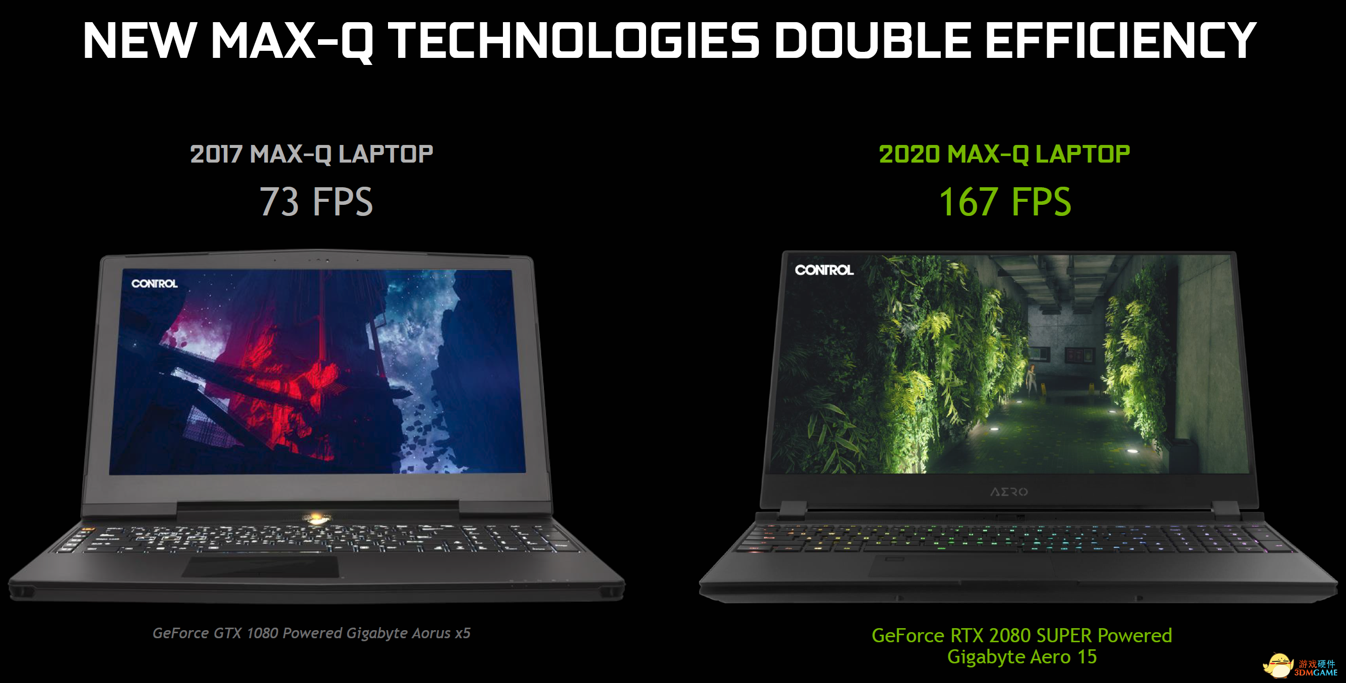 基于最新的MAX-Q技术,通过Dynamic Boost在每一帧画面上,智能自动调节GPU和CPU之间的功耗分配,从而提高整体游戏性能;并联合合作伙伴带来更高能效低电压的GDDR6显存;同时运用了创新的Advanced Optimus显示技术根据当前负载,智能判断适当的GPU用驱动笔记本屏幕而无需重启操作系统,延长电池续航能力。以及下一代能效调节技术优化系统设计,令GPU高效运行的同时提供更出色的整体性能表现。最新搭载MAX-Q的笔记本通过这些技术使性能提升的同时,降低功耗,提高续航时间,为用户游戏提供充足的动力。
