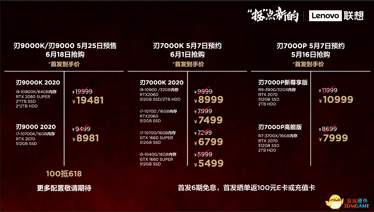 台机产品拯救者刃9000K/刃9000电脑5月25日预售,6月1日抢购,首发到手价分别为19481元、8981元,拯救者刃7000K电脑 5月7日预约 6月1日抢购,首发到手价5499元起,拯救者刃7000P 电脑5月7日预约 5月16日抢购,首发到手价7999元起。同时,联想滑板车M2同步开售,首发到手价仅1699元。