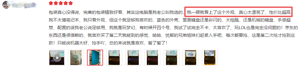 更有不少用户都表示自己被华硕天选的外观吸引了,作为一款引入了二次元元素,人美声甜的天选姬配上RGB机械键盘、棱角分明的机甲线条,华硕天选很有设计感。凭借这样的外观设计,华硕天选在外观趋向同质化的笔记本领域带来新鲜感,正好迎合Z世代热衷二次元、追求产品颜值潮流时尚的新品消费观,对于吸引不同领域的用户也具有很大的竞争优势。