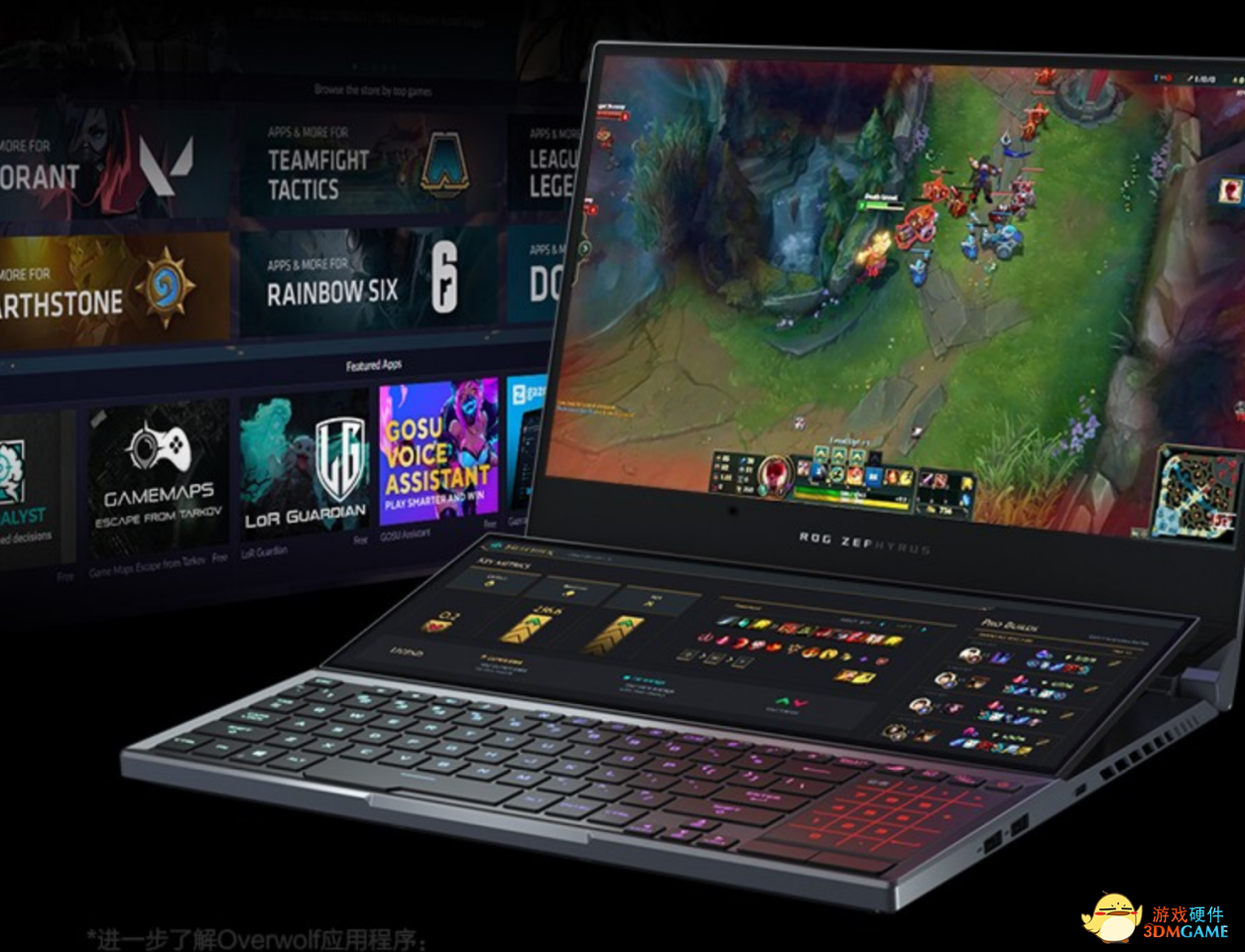 在实际应用方面,ROG ScreenPad Plus触控副屏也具有很强的实用性,用户可以通过内置的Overwolf软件轻松调整主屏与副屏的显示内容,从而实现同时间运行多任务,这一功能在程序员编程或是设计师作图时都大有妙用。更值得一提的是,其在多个游戏中的表现也堪称“开挂”级别。以时下热门的《英雄联盟》为例,常规游戏过程中玩家通常会通过TAB键查看游戏内敌我玩家的装备、状态、技能冷却等详细信息,但按下后信息界面会阻挡视野,玩家无法清晰的查看英雄行进状态,玩家在这一段时间内容易被偷袭或抱团击杀。