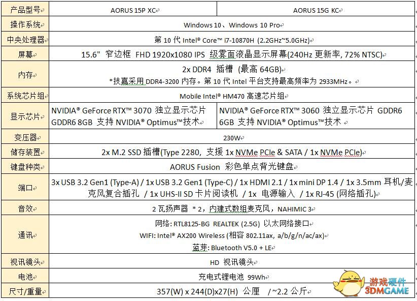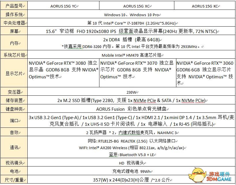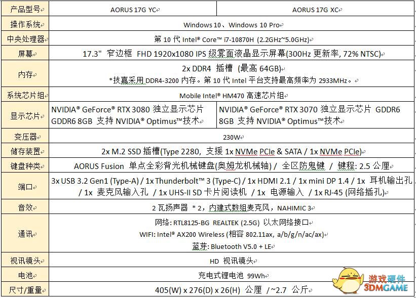 (图1、顶级电竞品牌AORUS今日推出搭载行动版GeForce RTX 30系列显卡电竞笔电。)