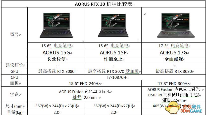 (图3、全新AORUS专业电竞笔电搭载240或300Hz电竞屏幕,AORUS 17G更搭载玩家喜爱的机械键盘。)