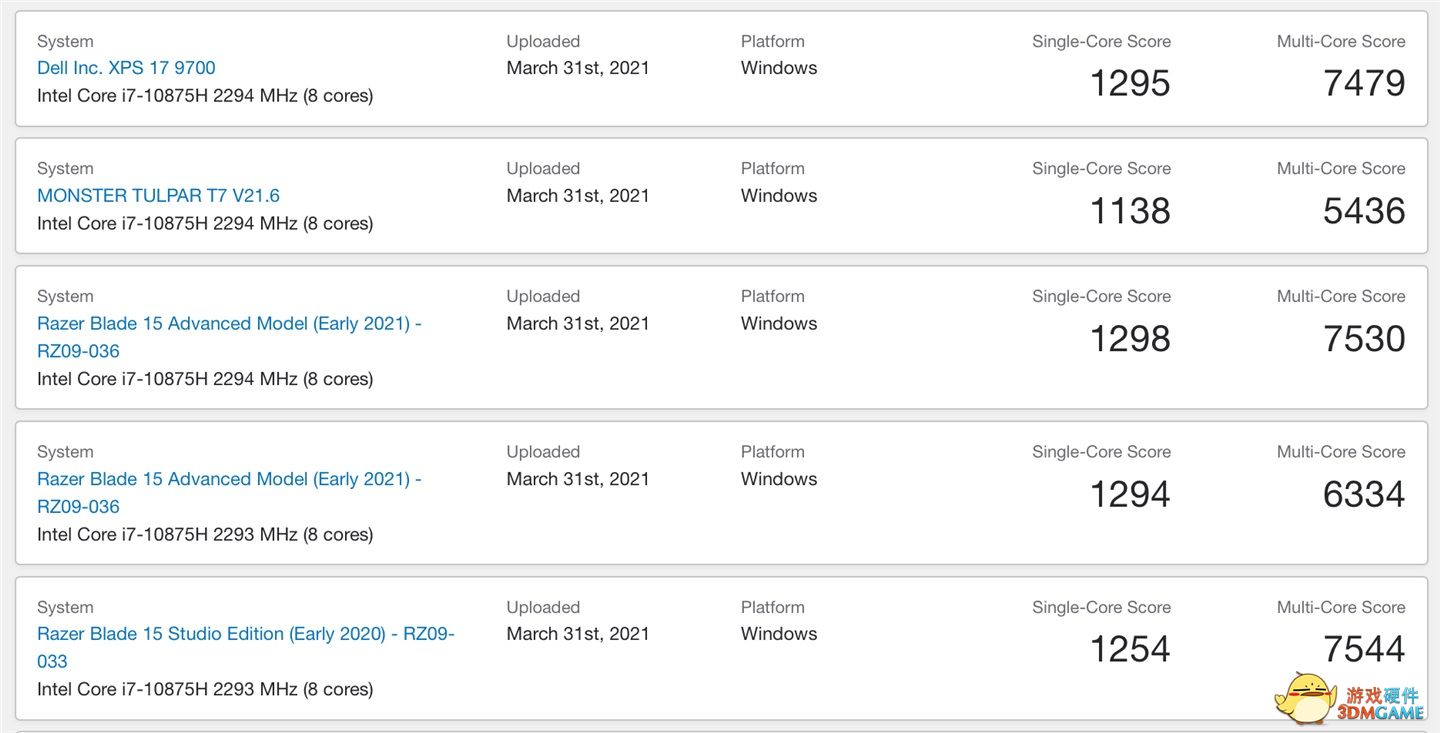 3月31日消息,搭载英特尔 11 代酷睿 i7-11800H 的联想游戏本已经出现在了 Geekbench 上,单核和多核跑分相比上代提升巨大。