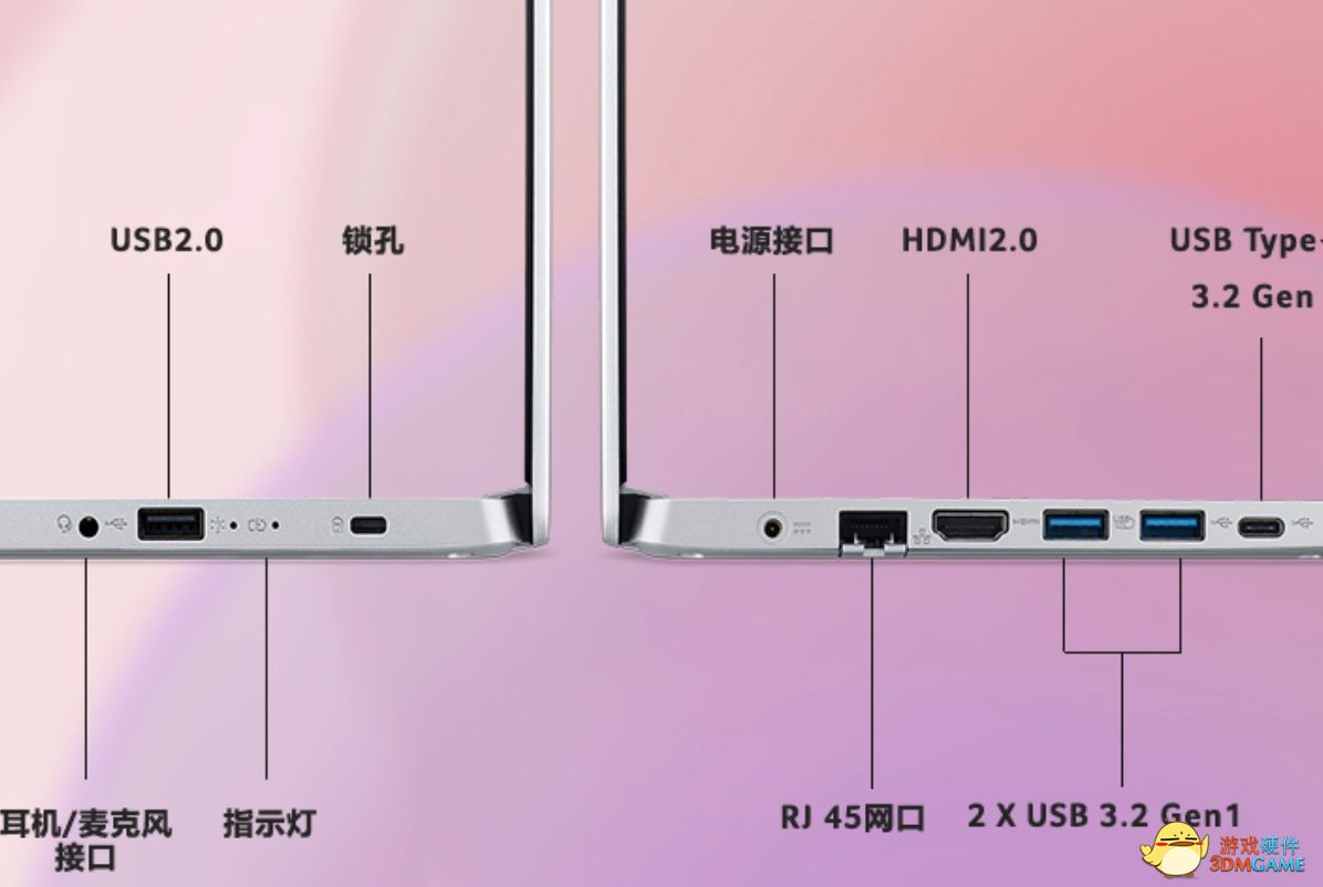 这款笔记本的一大卖点是接口丰富,包括三个 USB-A 接口、一个 USB-C 接口、一个 RJ45 网口、一个 HDMI 2.0接口还有耳麦接口。