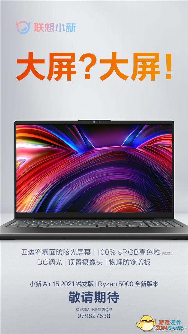 锐龙5000U系列处理器,35W性能释放。四边窄边框雾面防眩光屏幕,100% sRGB色域,DC调光,顶置摄像头与物理防窥盖板。