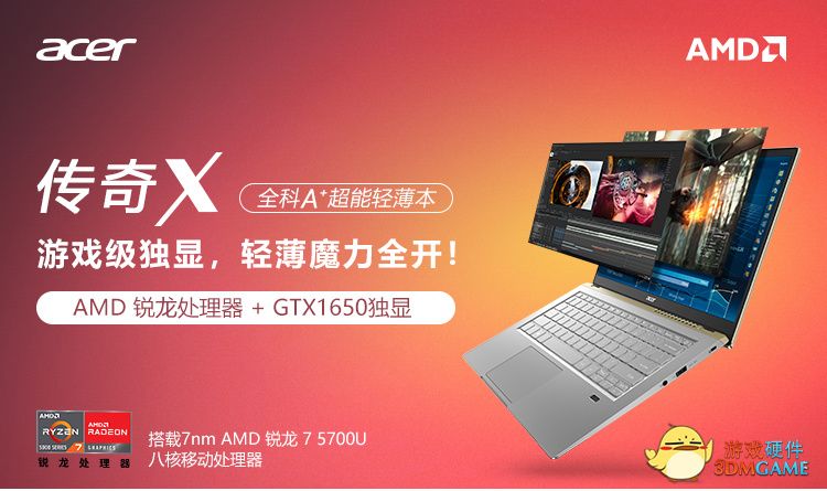 5月10日消息,新款宏碁传奇 X 现已上架京东商城,5.18 首发价 5499 元,搭载 AMD 八核 R7-5700U 处理器,辅以英伟达 GTX1650 独显,配备 16GB 高频内存和 512GB SSD。