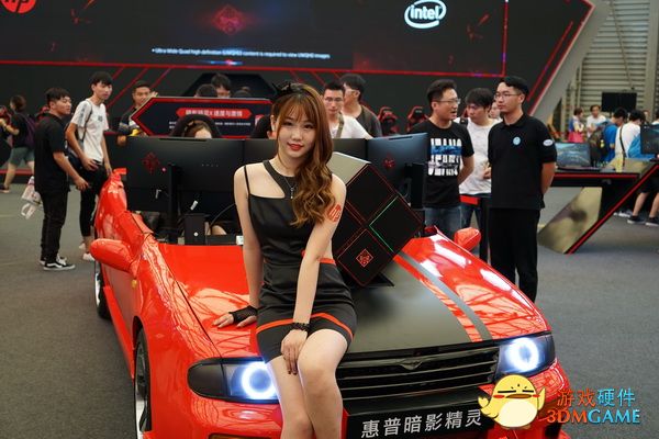 Showgirl依然是CJ重头戏,到达惠普展台最先入眼的当然是惠普高质量的Showgirl了。黑红的短裙,黑红的跑车搭配暗影精灵的冷酷黑红配色,同时高质量的Showgirl和跑车的性能寓意着惠普暗影精灵的优越性能。