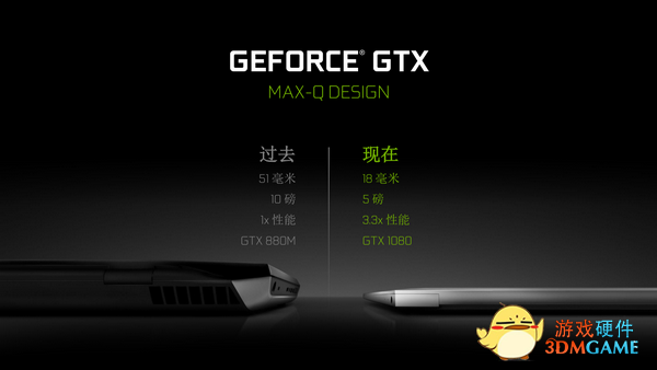在满足玩家性能之后,NVIDIA在Computex2017发布了MAX-Q设计解决方案,其让游戏笔记本电脑在基本保持GeForce GTX 10系列性能的同时,可以让笔记本电脑边的更轻、更薄,具备更长的续航时间。拥有MAX-Q设计的游戏笔记本电脑让玩家可以真正做到“鱼与熊掌不可兼得”。
