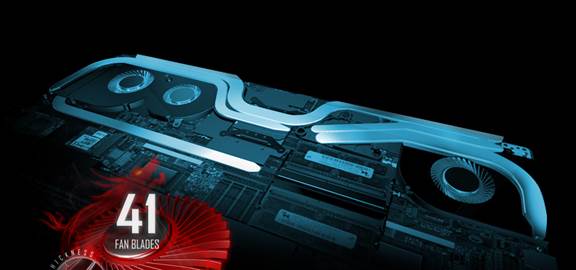 将一块GeForce GTX 1070显卡压缩到一台笔记本里,散热是重点。微星GS63VR 7RG-036CN游戏本配备了3风扇加五热管散热方案,机身底部采用镂空式设计,能够保证足够的进风量,再加上内部风道的优化,散热模组的合理分布使整机获得很好的散热效果。