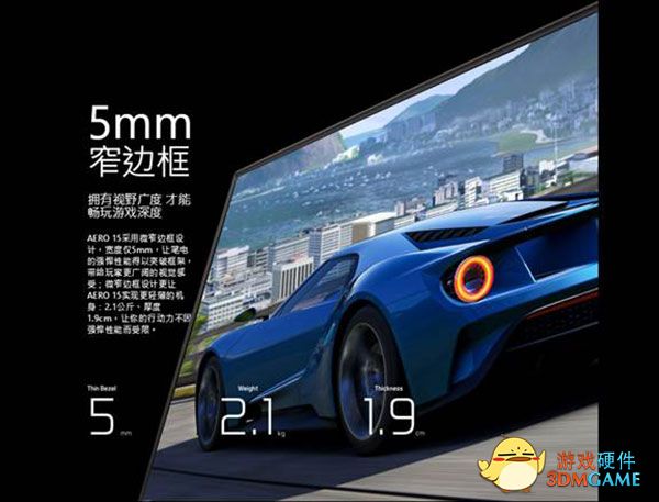 MAX-Q设计笔记本必须配备高性能硬件,除NVIDIA GeForce GTX 1070 with Max-Q显卡外,技嘉Aero 15X游戏本搭配了Intel Core i7 7700HQ处理器、512GB NVMe M.2高速SSD和16GB DDR4-2400MHz内存等硬件。另外,技嘉 Aero 15X游戏本最出彩的地方更是它的屏幕,其边框仅有5mm,这使得它使用了一块15.6英寸的屏幕也仅有正常14英寸笔记本的大小。