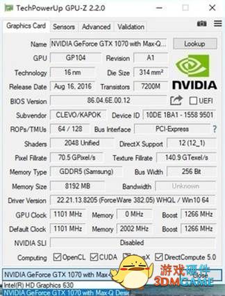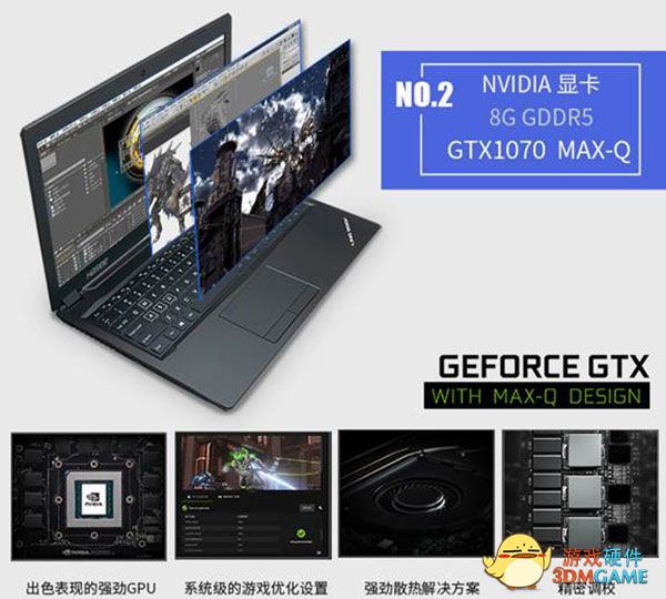 NVIDIA GeForce GTX 1070 with Max-Q显卡采用Pascal架构GP104-300核心,含1920个CUDA单元,搭载8GB/256bit GDDR5显存,由于显卡电压优化至90W,核心/Boost/显存频率分别为1101/1266/8000MHz。