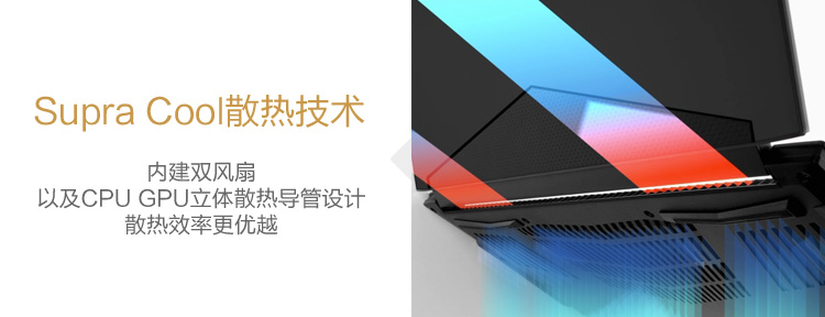 采用NVIDIA MAX-Q设计的游戏本散热系统是重点,毕竟是将一张GeForce GTX 1070显卡压缩到19.9mm厚的空间;赢刃Aero15X电竞游戏本采用技嘉Supra Cool散热技术,内建两把风扇和散热模块,入风口分布于笔记本底部,出风口设置于笔记本两侧,通过优化笔记本内部元件位置和优化风道构建出散热效果极佳的散热系统。