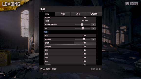 《绝地求生:大逃杀》设置为极致特效,分辨率1920*1080
