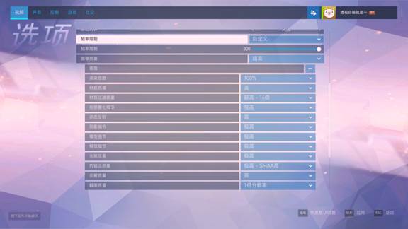 《守护先锋》设置为超高图像质量,帧率限制300