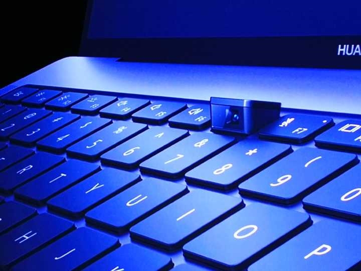 但是出于“全面屏”的设计考虑,将摄像头设计在位于键盘上F6-F7之间,开启之后可以打开摄像头,不使用时可以将它放置下去,这也是新款华为笔记本的亮点所在!