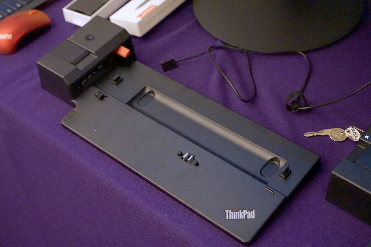 在现场,联想展示了两款笔记本外接扩展坞,其中雷电3接口扩展坞最多支持13个外接接口,无论是多显示屏还是多键鼠用户,通过这款扩展坞都能轻松满足自己的需求。