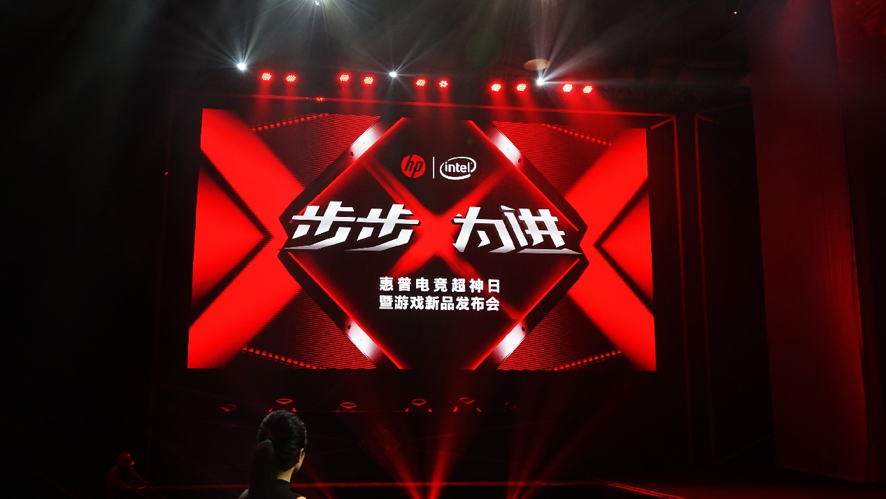 进入现场后,迎面而来的就是本次发布会的主题—“步步为进”,笔者认为所谓步步为进就是惠普在成功推出“暗影精灵”和“光影精灵”系列产品之后,再度扩大自己的产品生态,从更多更全面的笔记本及PC,再到外设产品的全面推进,并通过举办线下比赛、参与战队赞助等致力于推广中国的电竞文化氛围。