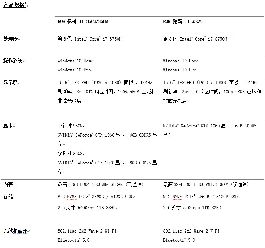这两款游戏笔记本电脑拥有全新的紧凑型设计和可用于定制的Aura Sync照明的前灯条。同时都配备了世界首款144Hz超窄边框显示屏,具有超快的3ms灰阶(GTG)响应时间,HyperStrike Pro游戏键盘用于改善输入体验,HyperCool Pro技术可为其高性能CPU和GPU降温。同时它们也是世界上第一台具有四天线Wi-Fi功能的笔记本电脑,网络连接性大大提高。