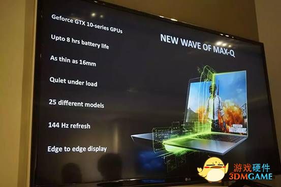 NVIDIA推出新版Max-Q设计方案,采用GeForce GTX 10系列显卡,续航时间达到8小时,厚度仅16mm,屏幕刷新率达到144Hz,笔记本工作时非常安静。