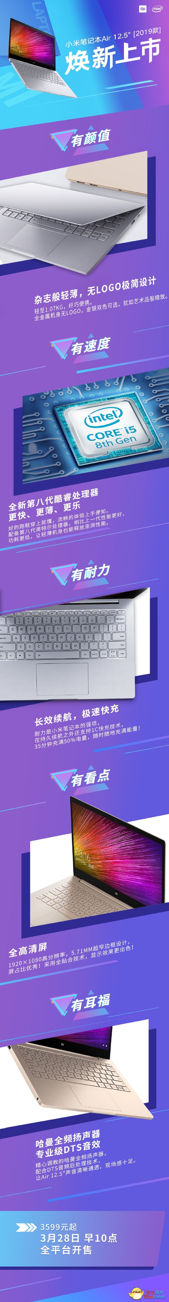 3月26日,12.5英寸小米笔记本Air八代增强版正式发布,升级全新第八代酷睿处理器,性能较上一代提升显著,现已开启预约,售价3599元起,将于3月28日早10点全平台首发。