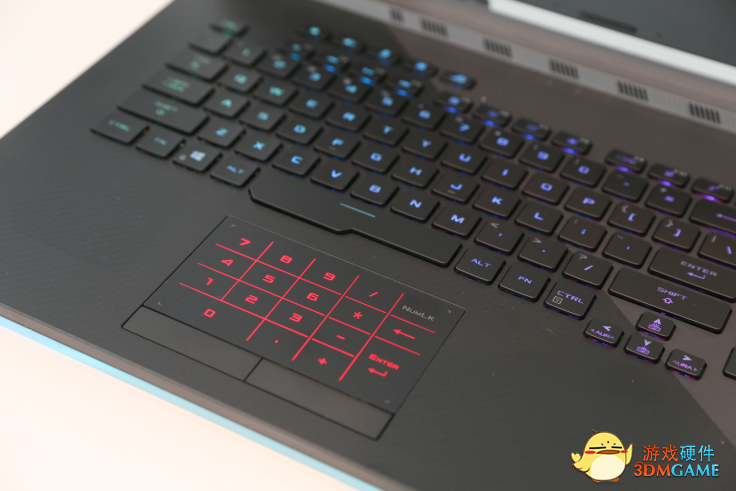 现今游戏本的外观设计早已不断趋同,市面上的产品呈现基本都是棱角分明的外壳、RGB灯效、再辅以或尖或圆的块状点缀,与此同时各家厂商的区隔设计也逐渐模糊,当遮蔽掉LOGO的时候,玩家甚至很难发现其中的不同之处。这种问题的出现一方面是使用公模的厂商在设计上没有主导能力,另一方面也是厂商不愿改变,惯于先例而流于平庸。站在一个不断陷入同质化死圈的设计潮流之中,这一次ROG枪神3呈现的惊喜弥足珍贵。