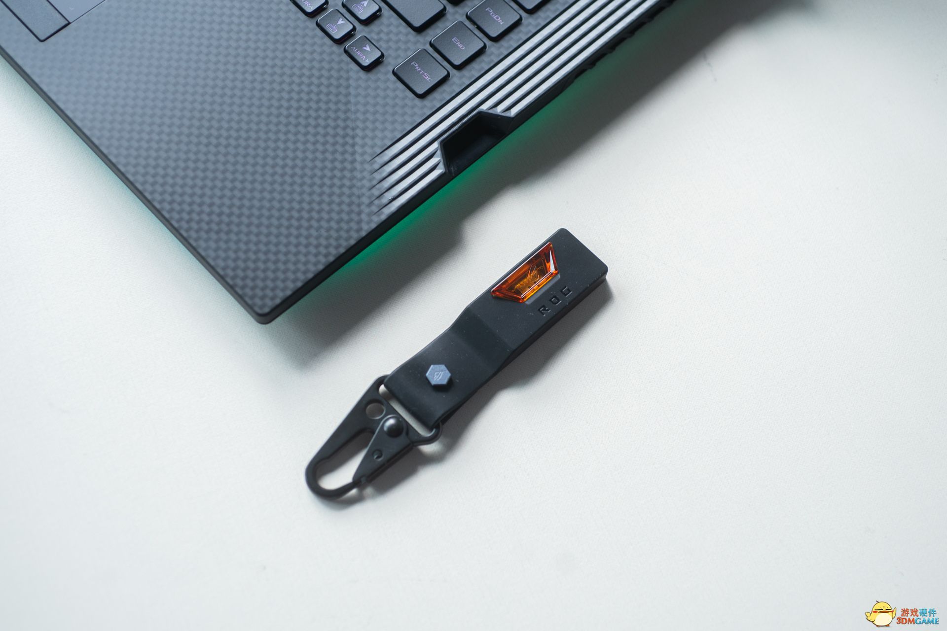 整个C面还有一个亮点设计,就是键盘区右侧的“钥石”。这个小部件可以单独拿下,通过磁吸方式与机身连接,正确连接后非常牢固,不会轻易丢失。包装内还附送了一个可以将钥石收纳起来的装饰扣可以挂在自己的书包上。