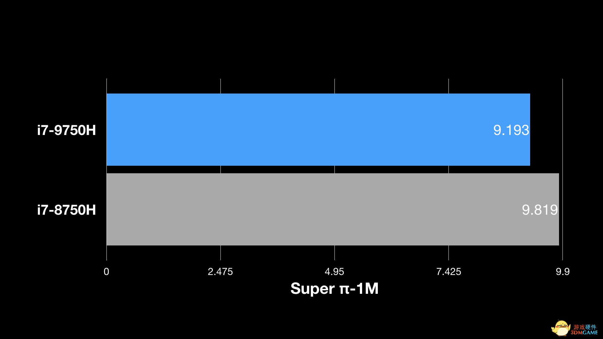 Super π单线程测试成绩相比起上代i7-8750H小有提升