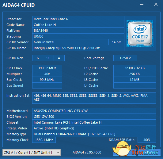 枪神3搭载了最新一代的Intel Core标压处理器i7-9750H,拥有6核心12线程设计,仍然为究极打磨的14nm++工艺。比起上代i7-8750H来说,基础频率从2.2GHz提升到了2.6GHz、单核最大睿频从4.1GHz提升到了4.5GHz,全核睿频从3.9GHz提升到了4.1GHz、三级缓存从9MB提升到了12MB,二者的TDP均为45W。