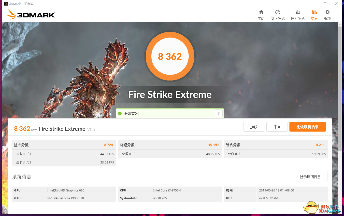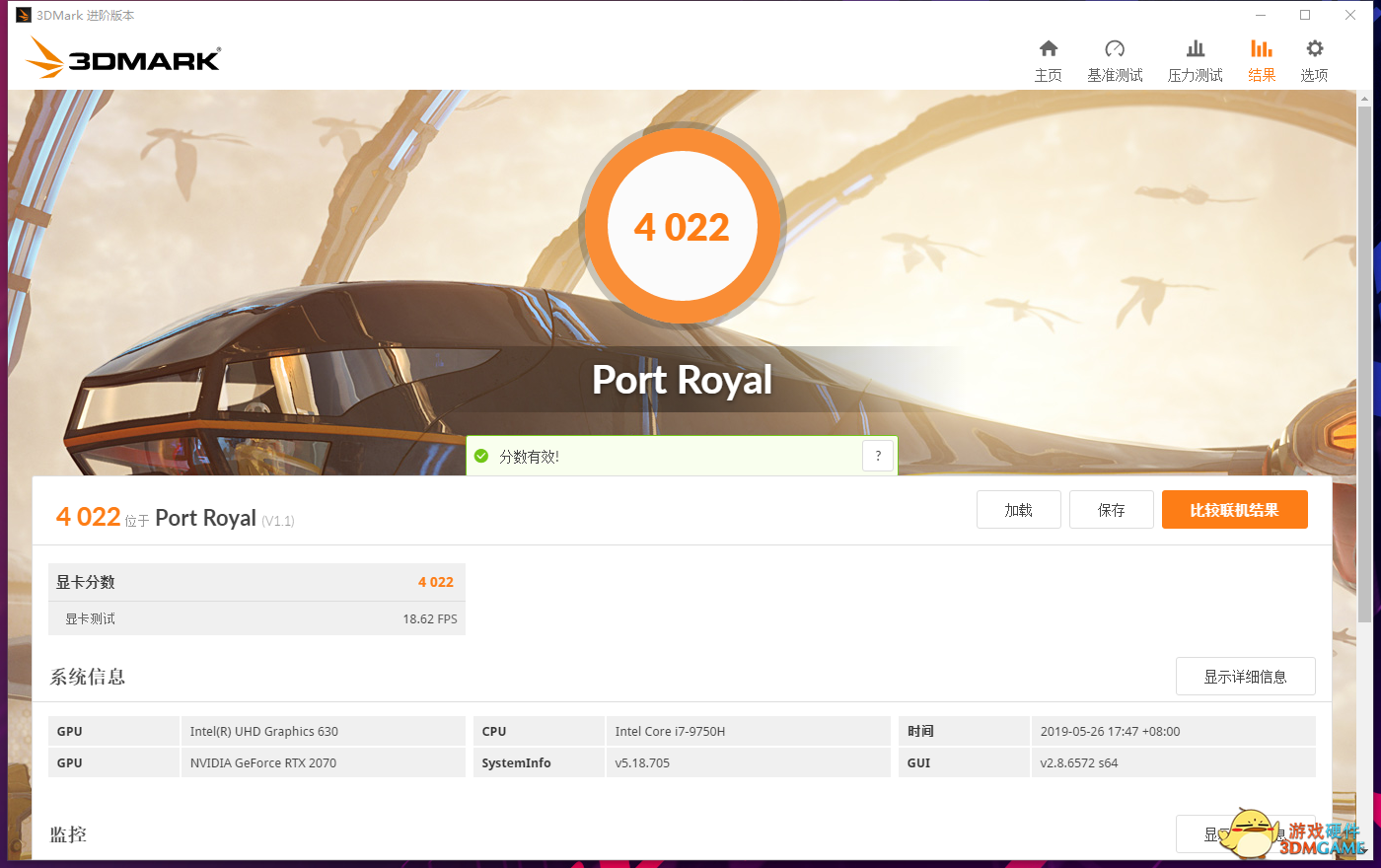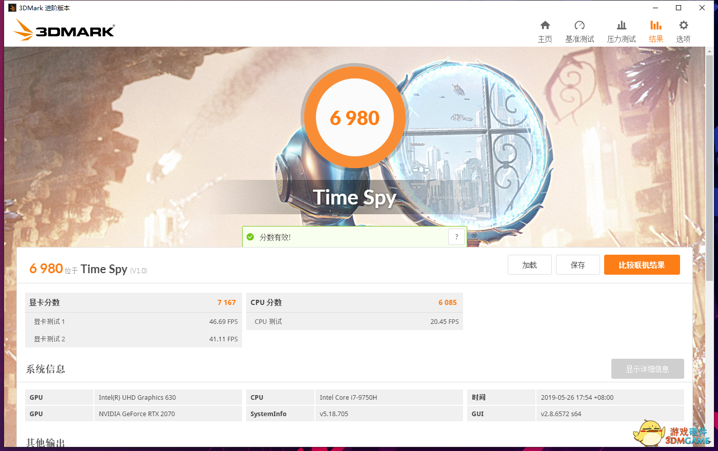 3DMark各项测试成绩正常,比起一些使用RTX 2070 Max-Q的笔电来说性能优势非常巨大,而比起上代GTX 1080,DX11性能上差距已经不大,而DX12部分性能则已经完成了反超。