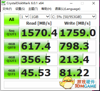 其他硬件方面,枪神3使用了一块M.2接口的单个1TB容量的SSD,硬盘本身正反两面都有金属贴片辅助散热。这块SSD虽然没有贴纸标明身份,但我们也仍然查到了它的型号。这块硬盘是Intel的660p,这是一块采用了QLC颗粒、使用PCIe 3.0x4通道、支持NVMe协议的产品。在我们的实际测试中,读写速度都在1600MB/s上下。有一说一,660p对于这样定价的产品来说有些略显小气了。