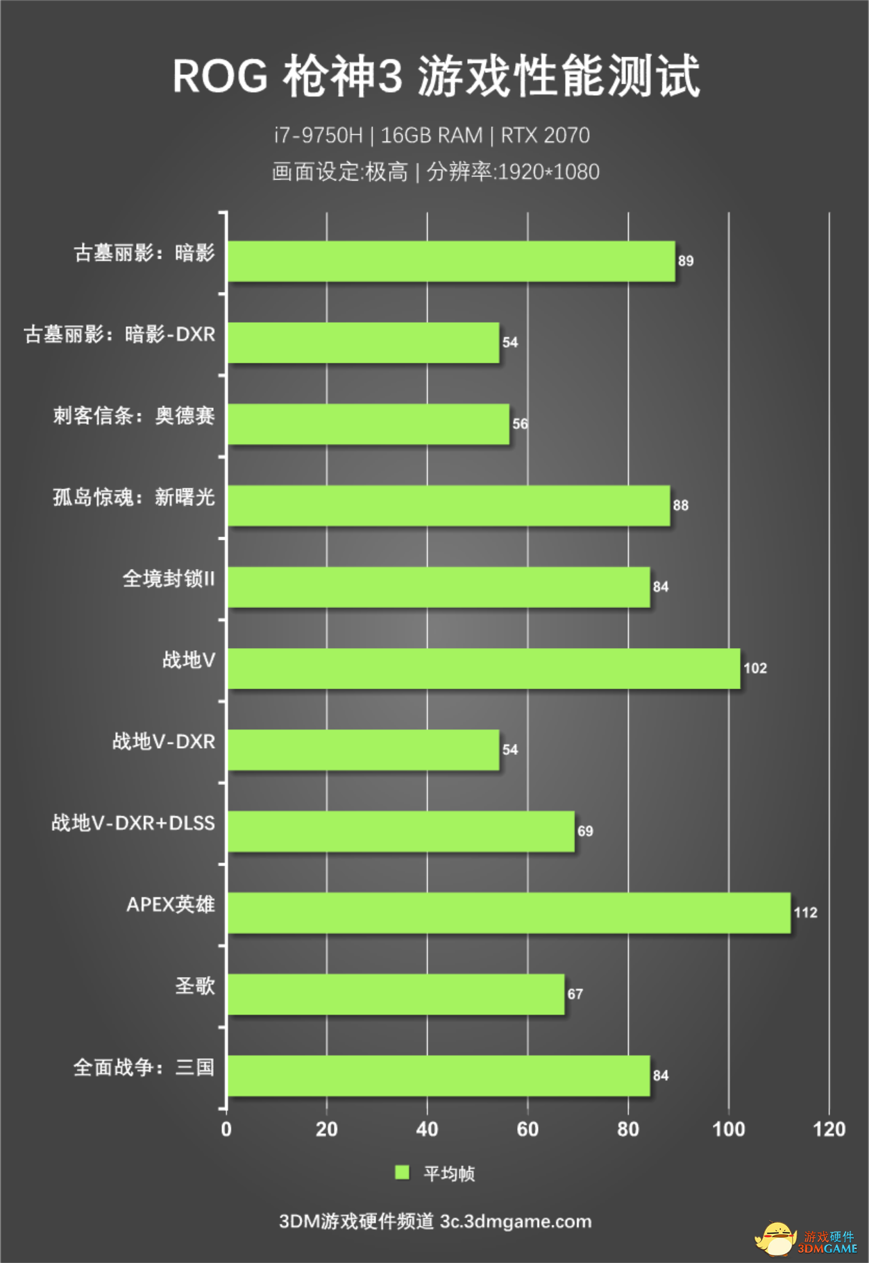 i7+RTX 2070,这种级别的硬件不必多想,1080p全最高特效的设定下应付起来自然是游刃有余,在《古墓丽影:暗影》和《战地V》两款游戏中开启“DXR-高”设定下,也基本可以保持在60帧左右稳定运行。通吃现阶段以及未来两三年内的大型游戏,枪神3都不在话下。