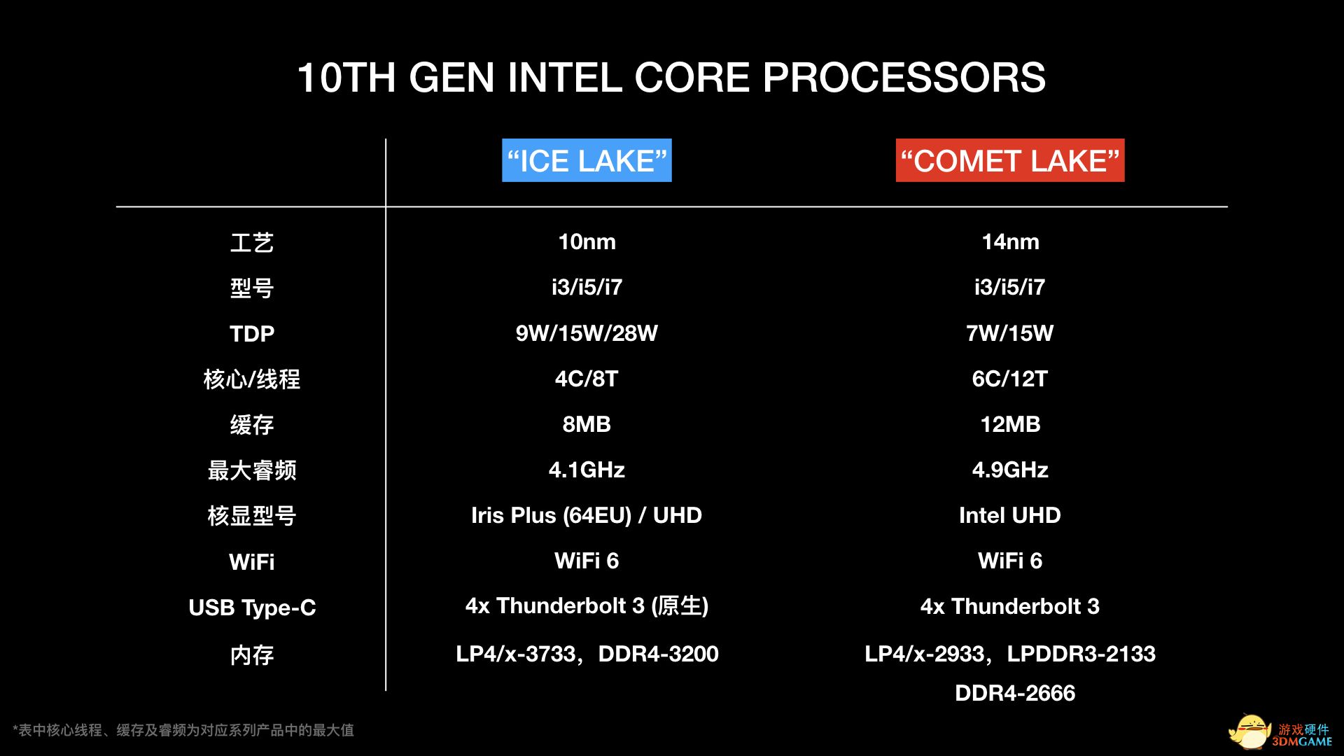 十代酷睿在整体性能上其实并没有很大的进步,但它仍然看点不少。十代酷睿目前包含了10nm的Ice Lake和14nm的Comet Lake两套架构。其中Ice Lake更像是传统意义上的真十代。它基于全新的Sunny Cove架构、拥有性能翻倍的锐炬Plus核显、内存部分最大支持到了DDR4-3200规格。除此之外,在对应芯片组的功能性上面也进步不少,原生支持了雷电3接口、也支持了最新的WiFi 6标准,而Comet Lake则是小修小补的产品,无非就是更高主频、更多核心,整体更强调性能,二者是互补关系。