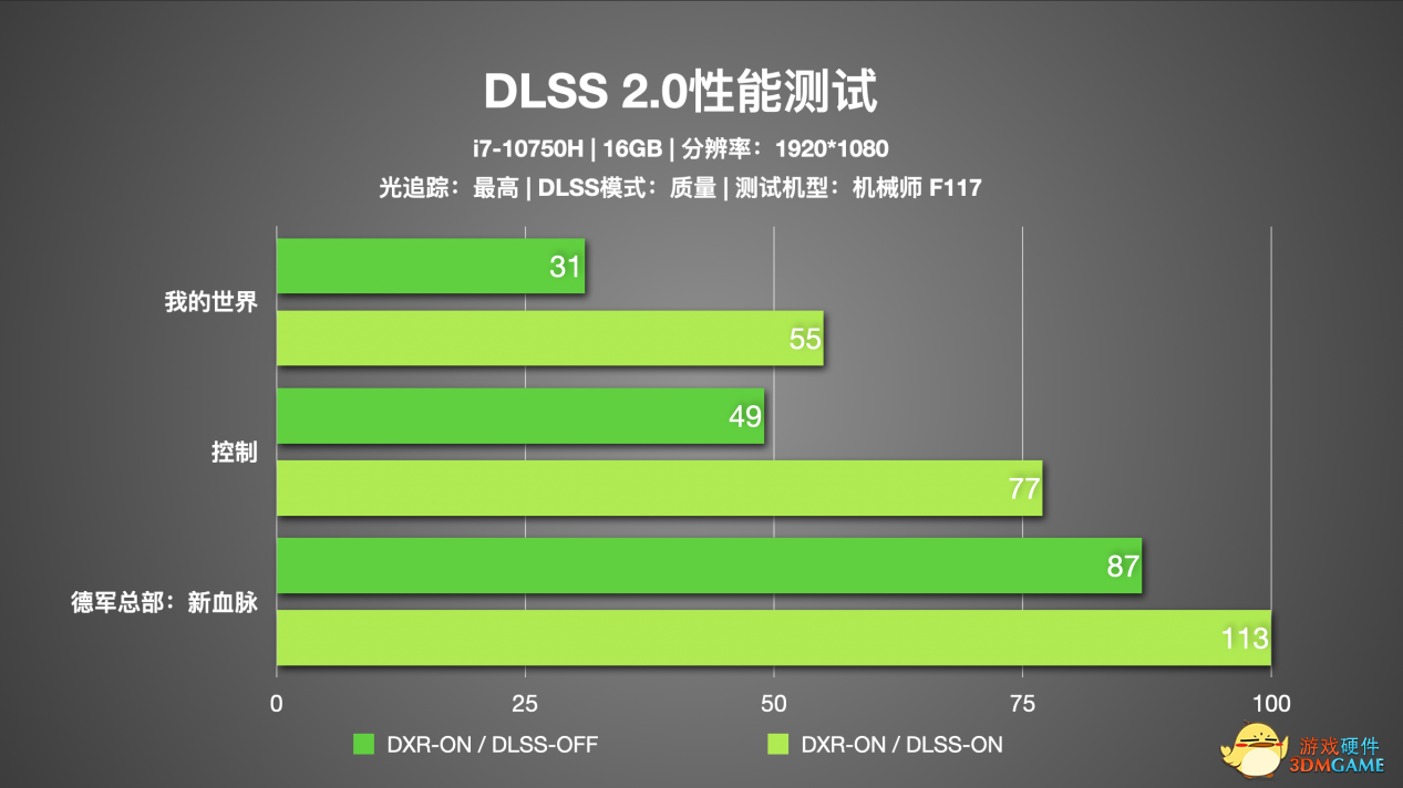 在我们的测试当中,开启DLSS 2.0甚至可以在游戏画面不变甚至更好一些的情况下让性能提升到1.5倍。而目前市面上支持实时光线追踪以及DLSS 2.0技术的GPU产品只有NVIDIA GeForce RTX系列。