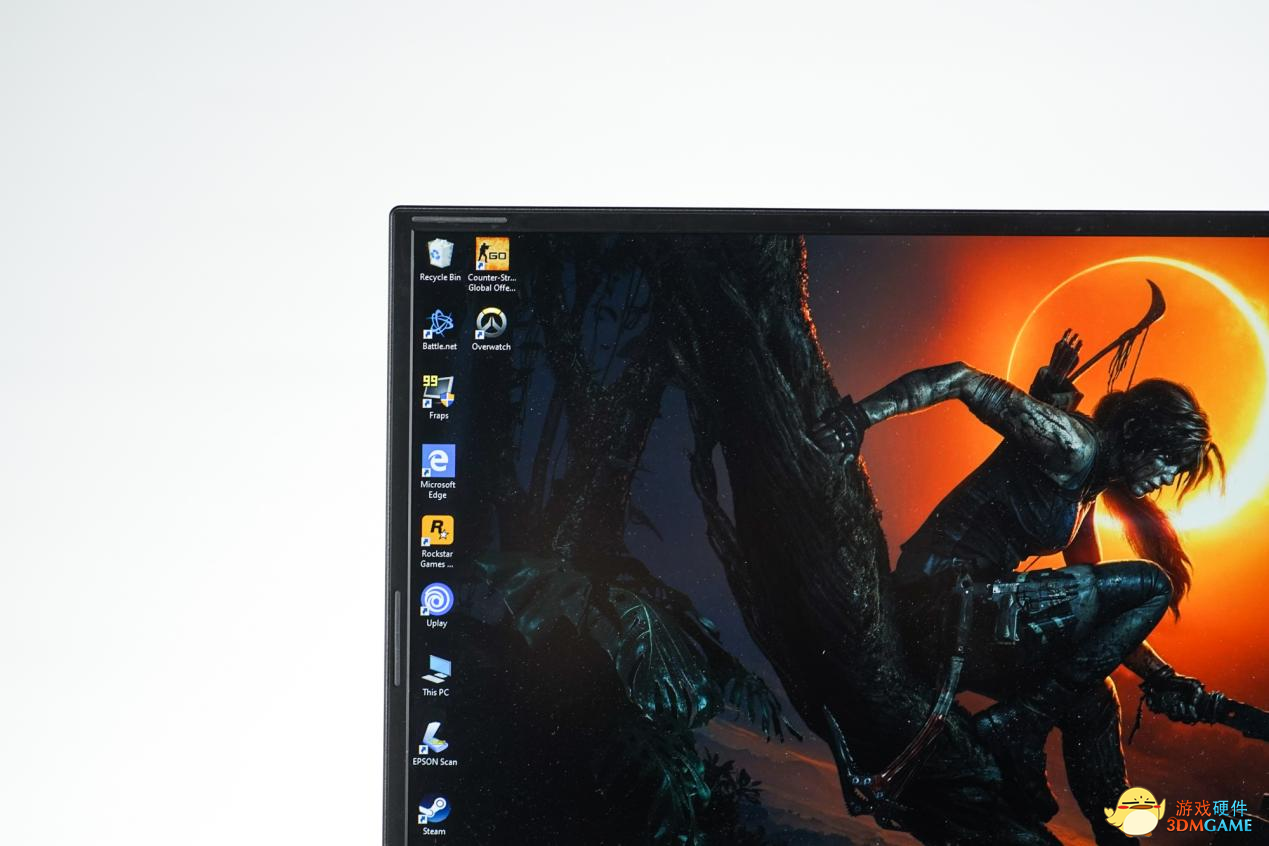 笔记本B面采用了超窄边框设计,左右两侧边框宽度仅6mm。屏幕位置整体偏上,更符合观看视角,整体的屏占比做到了惊艳的81%。摄像头被移到了屏幕下方位置。这块屏幕在规格上也非常出色,拥有72% NTSC/100% sRGB的色域覆盖,并且拥有144Hz的刷新率。