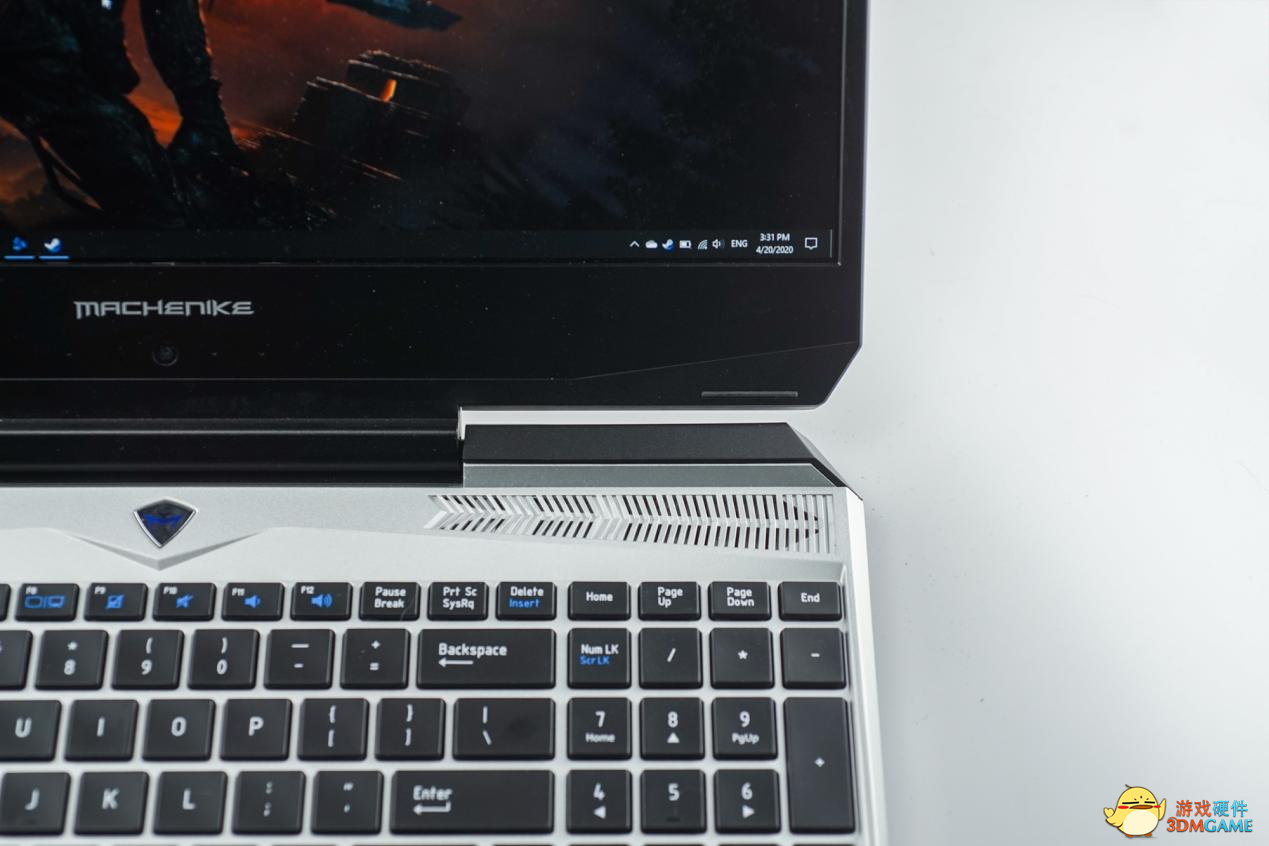 键盘部分采用了四分区的多彩背光,键盘键程十分充足,回弹干脆,整体的敲击手感非常出色。