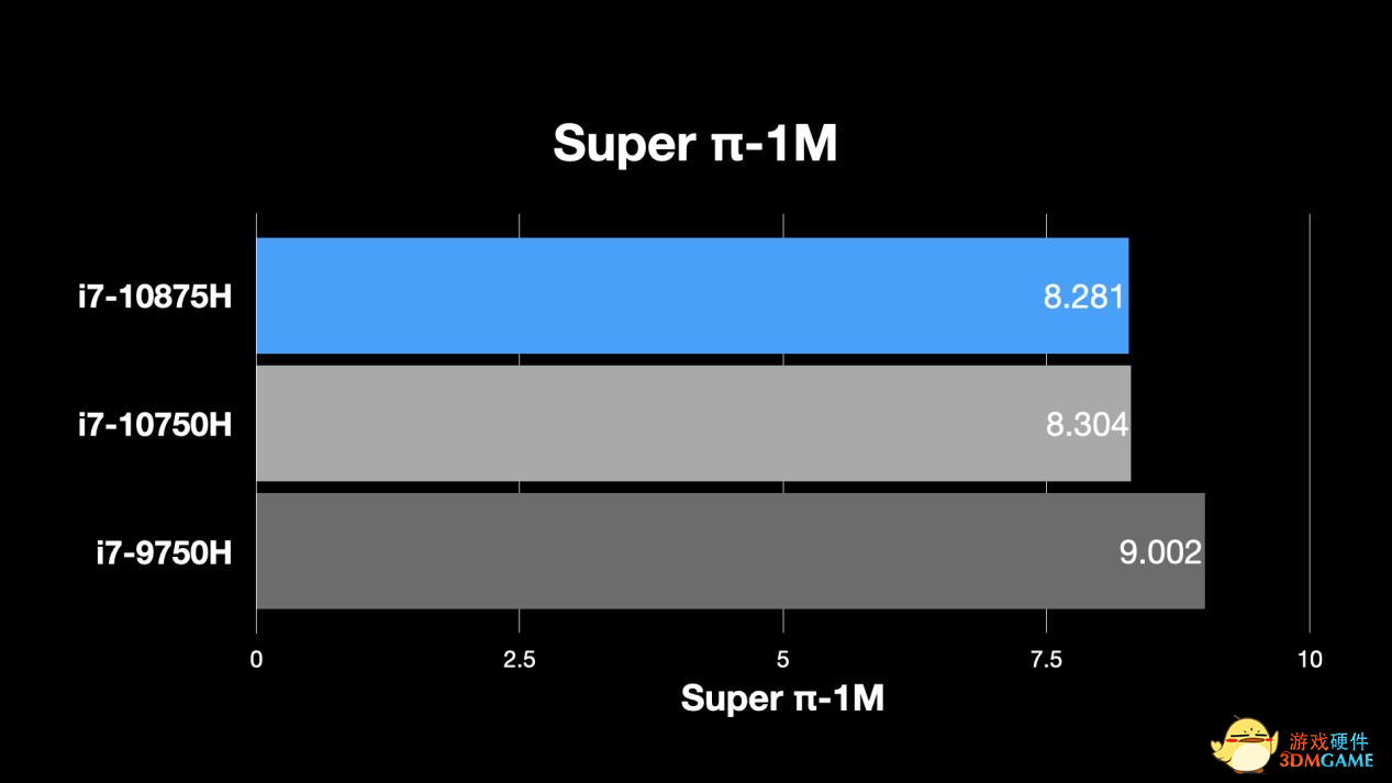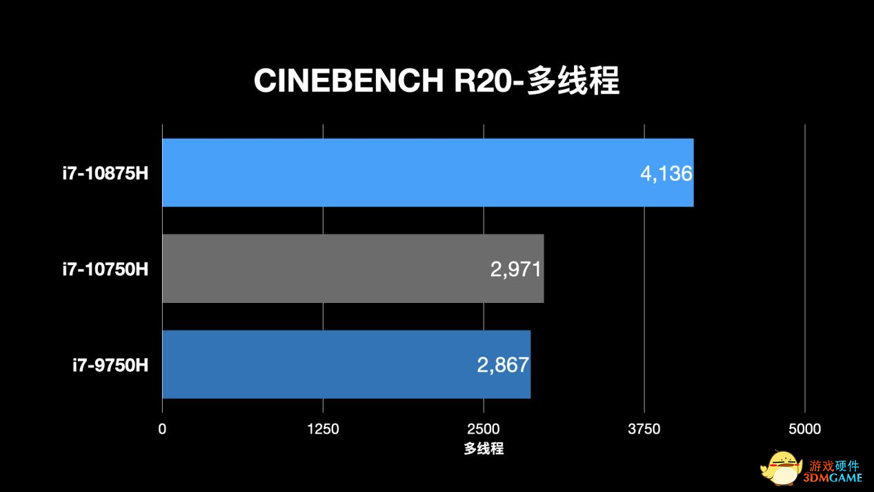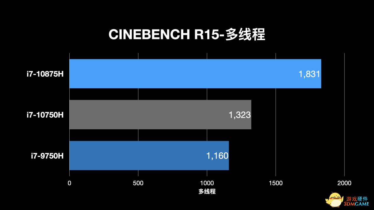 在基准跑分环节中的Super π当中,可以看到得益于更高的单核睿频,i7-10875H的用时更短了一些;而这颗处理器最大的提升还是在多线程部分。不论是国际象棋、CINEBENCH R15还是R20,增加到8核16线程之后的i7-10875H都相较于i7-10750H来说有明显的提升,整体的多线程性能提升幅度平均在37%左右,绝对不算是挤牙膏。
