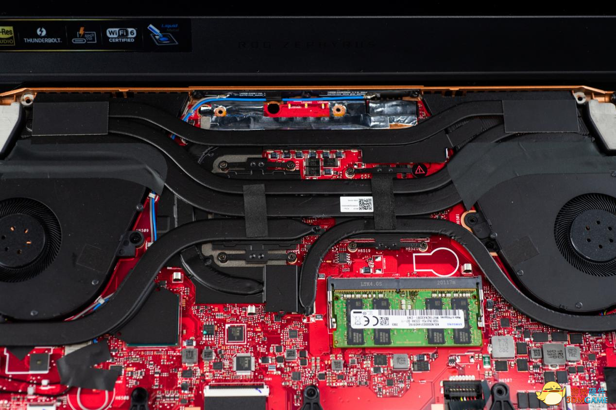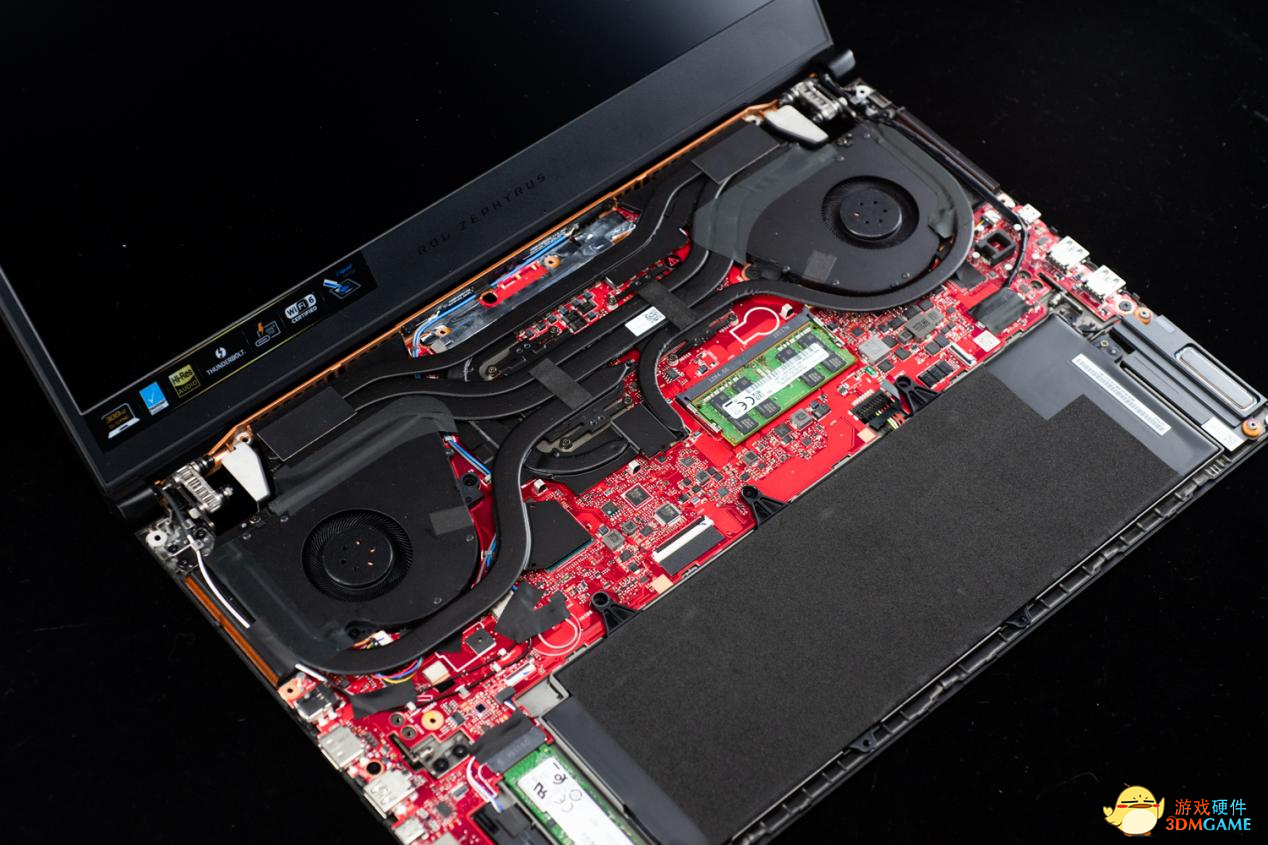 看完这些更新后的硬件,我们继续拆开笔记本看看它的内部设计,看看在18.7mm这样的机身内,ROG是如何处理CPU和显卡这两个发热大户的。整机拆卸起来难度比较高,掀起上盖的时候注意从上往下慢慢抬起,避免扯断排线。