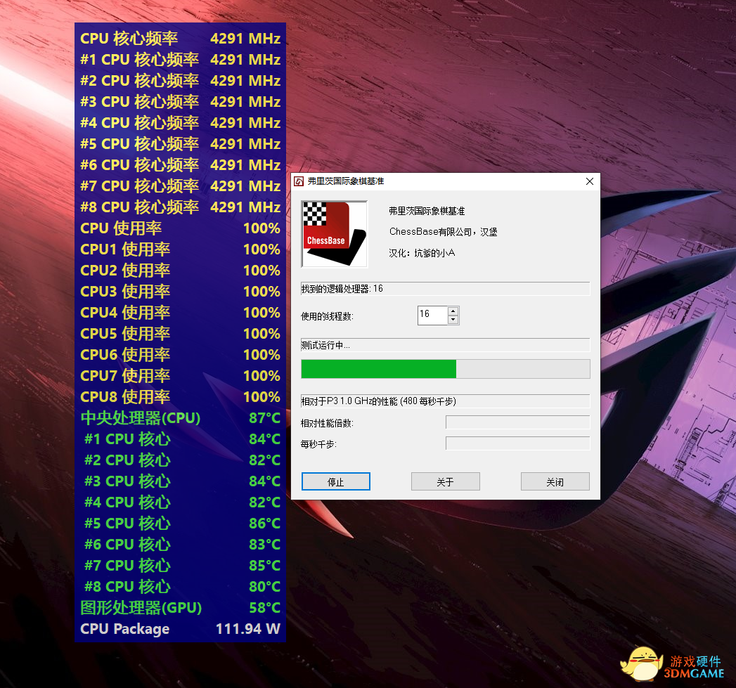 在短时间的跑分测试当中,我们看到这颗CPU可以跑在全核心4.3GHz此时功耗已经突破了110W,在这个情况下CPU温度也只有87℃,所以以20分钟拷机后80℃这个温度来看,完全可以让CPU频率再高一些运行。